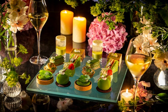 さらに、乾杯のシャンパーニュと国産メロンのフルーツプレートをセットにしたデラックスアフタヌーンティーのほか、18時30分からはスパークリングワインを含むフリーフロードリンクとともに、セイボリーとスイーツ各4種を楽しめる「抹茶と香りのナイトティー “ボタニカルガーデン”」もご用意しております。