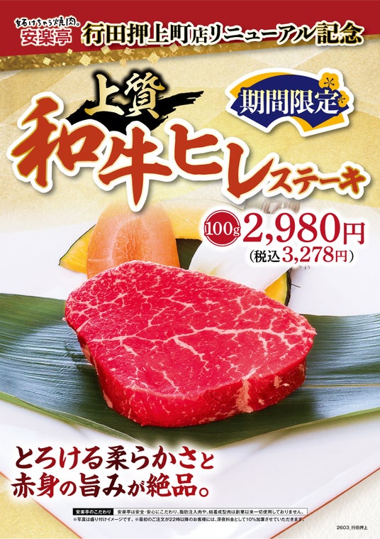 株式会社安楽亭(本社:埼玉県さいたま市、代表取締役社長:柳 先)が運営する「安楽亭 行田押上町店」は2026年3月12日(木)よりリニューアルオープンを致しました。