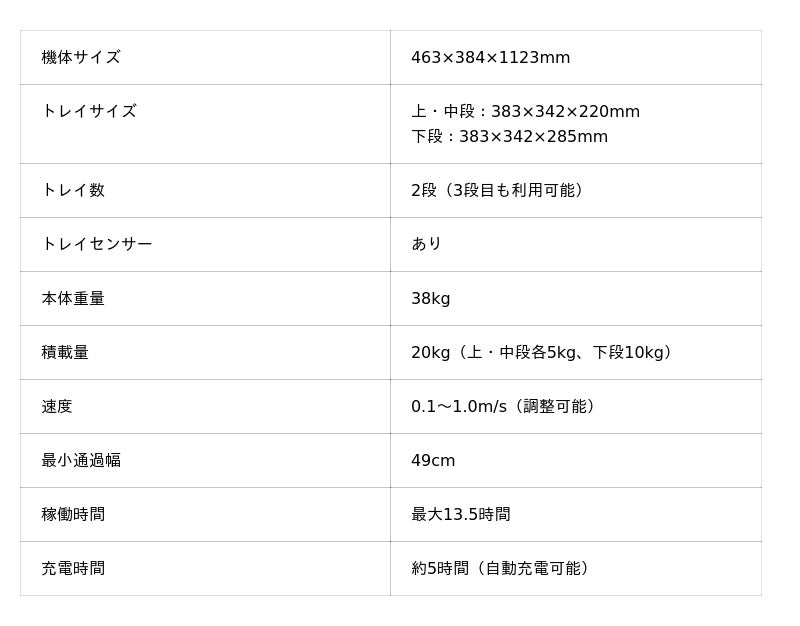 最小通過幅は驚異の49cm。従来の配膳ロボットでは断念していたカフェや居酒屋等でもご活用いただけます。また、飲食店以外にもクリニックでのカルテ運搬でも活躍いたします。