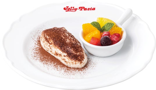 特製ティラミスとフルーツのプレートドルチェです。ジョリーパスタで人気のティラミスと、オレンジやパインなどのフルーツをどちらもお楽しみいただけます。