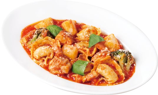 リコッタとほうれん草を包んだラビオリを、チキンやブロッコリーと合わせ、トマトソースで仕上げました。ボリューム控えめの食べきりサイズで、アルコールとの相性も抜群です。