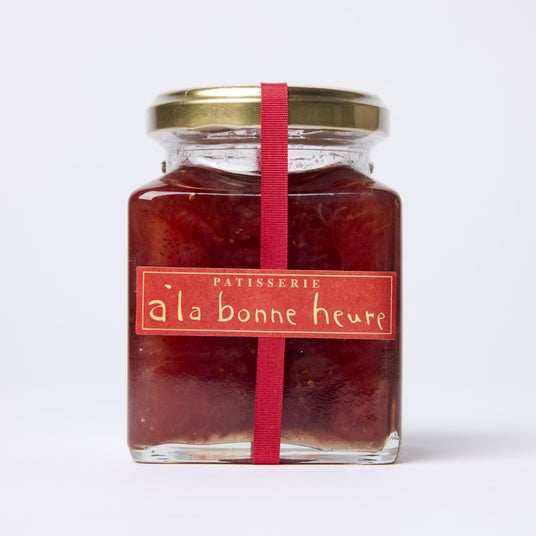 赤坂に店を構えるパティスリー「アラボンヌー(a la bonne heure)」のストロベリージャム。国産のいちごを使い、果実のやさしい甘みと香りを引き出した、シンプルで飽きのこない味わいに仕上げました。トーストやヨーグルトに添えて、朝の食卓でたのしめる一品です。
