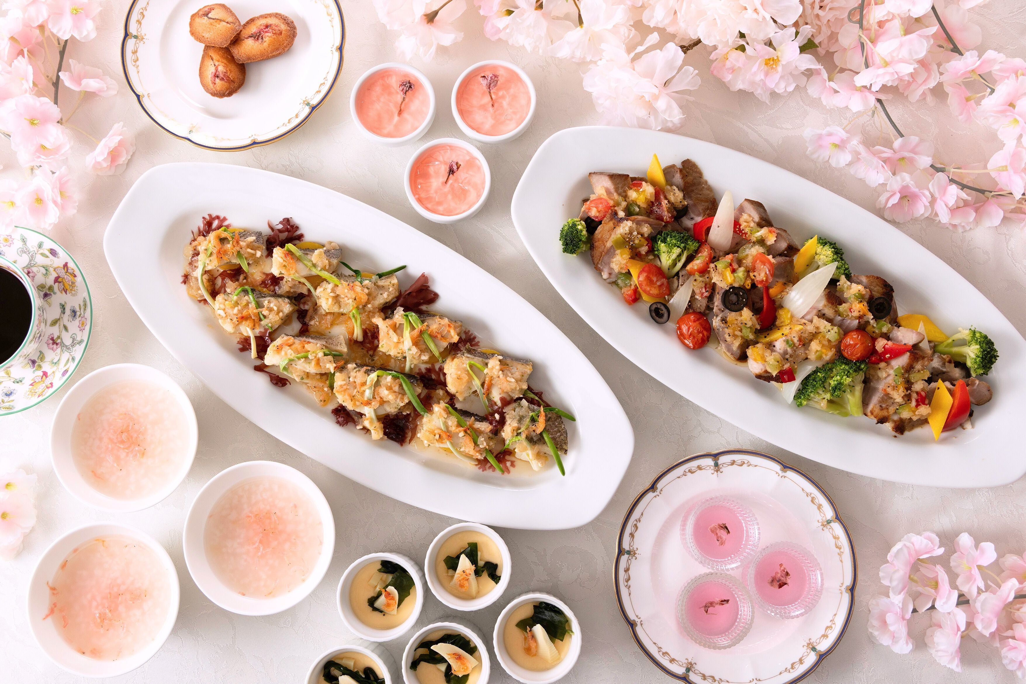 レストラン「ジョージタウン」では、春の訪れを感じる“桜”をテーマにした期間限定メニューをご提供いたします。旬の食材をふんだんに取り入れ、華やかさと身体にやさしい味わいを両立した、春ならではの朝食をご用意しました。季節感あふれる和の逸品として、桜エビの旨みを活かした「桜粥」や「筍と桜エビの茶碗蒸し」などをご提供するほか、洋メニューの「白身魚のヴァプール」には桜エビ香る特製ソースを合わせ、海の香りと春の彩りが調和する一皿に仕上げました。デザートには、桜の風味をまとった「桜のマドレーヌ」「桜のゼリー」「桜香るパンナコッタ」に加え、“とちおとめ”を使用した「苺クリームパイ」をご用意。お食事の最後まで春の余韻をお楽しみいただけます。旅行やビジネスでのご滞在はもちろん、朝食ビュッフェそのものを目的に訪れたくなるこの春だけのラインナップです。