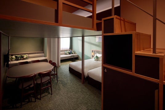 全276室、広さ20平方メートル から73平方メートル の全9タイプを用意。客室のテーマカラーである赤・青・緑は、それぞれ旧横浜市庁舎内で使用されていた色を落とし込んでいます。赤は旧議長室の絨毯の色、青は旧市庁舎内の艶のある磁器質タイルの色、緑は旧市会棟本会議場の絨毯や議員席の色をイメージしています。また、最大6名まで宿泊できる「やぐらスイート」は、広さと高さを兼ね備え、友人グループや家族で利用する際も同じ空間でゆったりと過ごせます。最大4名定員の「かたりばルーム」は、2名で広々と贅沢に過ごすことはもちろん、4名でソファを囲み、語らいながら楽しむのもおすすめです。その他、部屋タイプの異なる個性豊かな客室を用意し、旅のシチュエーションごとに選ぶことができます。
