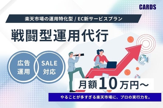 株式会社CARDS(本社:岩手県盛岡市、代表取締役:猿川 哲朗、以下「CARDS」)は、2026年3月より楽天市場の運用支援に特化した新サービスプラン「戦闘型運用代行」の提供を開始したことをお知らせいたします。