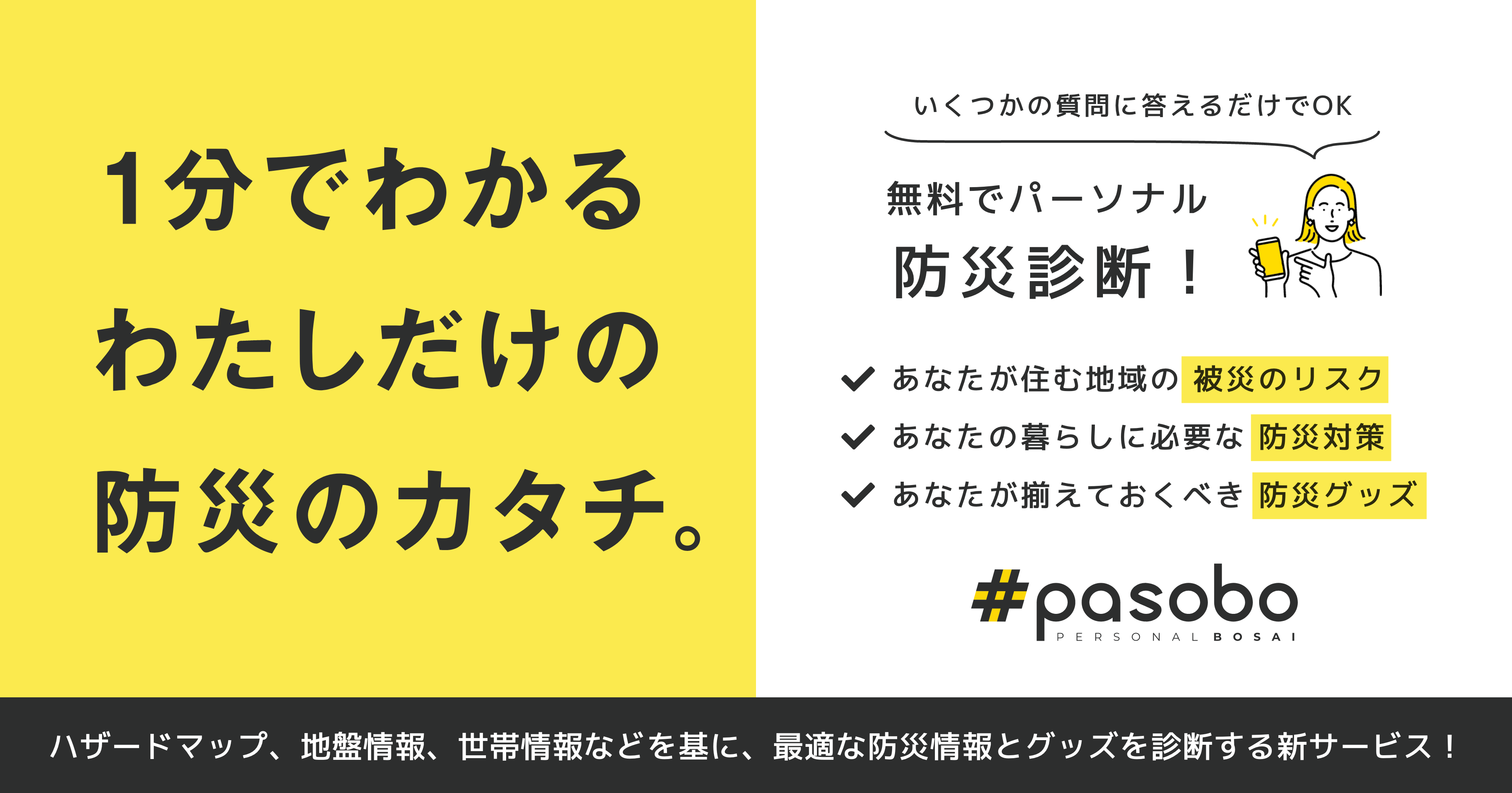 事業内容:パーソナル防災診断「pasobo(パソボ)」、防災ギフト「LIFEGIFT」などの開発・提供、地域・法人に関するマーケティング・防災支援