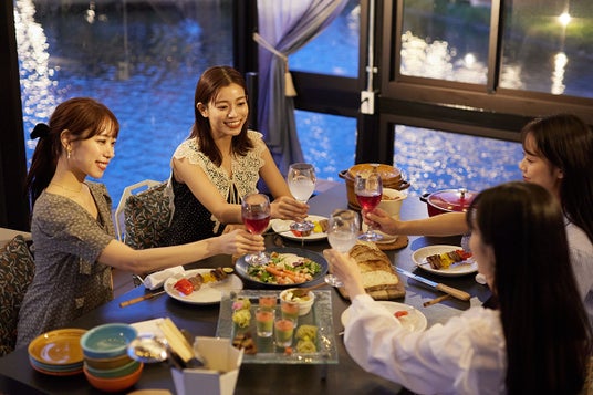 「幻想的な雰囲気が魅力の水上テラス」での「ディナータイム」