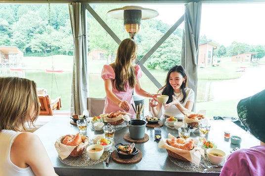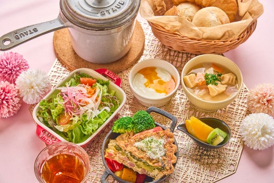 グランピング体験をさらに特別にするいちごを使った「春の豪華グランピング新メニュー」が登場。季節食材・地域食材を多く取り入れた春の新メニューでは、「いちごとブラータチーズのサラダ」「黒毛和牛串」に加えて「姫鯛と筍のパエリア」などの「STAUB鍋料理」が提供される他、焼き立てパンやグリル料理からスイーツまで、アウトドア料理研究家 高松美里さん監修の魅力的なメニューを堪能できます。