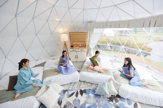 人気宿泊棟の一つで室内の解放感が魅力の「ホワイトドーム」