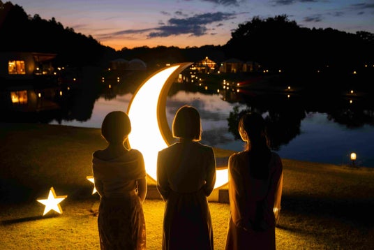 ライトアップされた月のオブジェが印象的な「フォトスポット」