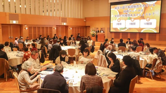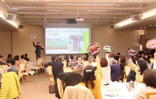 笛吹市のホテル春日居で、紀ノ川農業協同組合(和歌山県)などの産地を招き79人が交流しました。17の産地をそれぞれ紹介し、「推し生産者」を利用者が応援して会場を盛り上げました。ホテルのシェフが各産地の食材を吟味し考案したランチを楽しみ、生産への感謝や農産物の味わいの感想などを伝えました。生産者は「顔の見える関係があるからこそ、日々の生産の仕事にやりがいが見つけられます」と交流により得られる原動力を語りました。