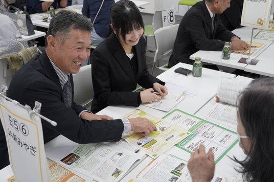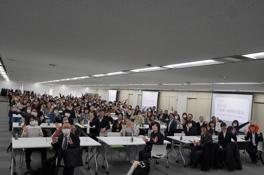 神奈川県ビジョンセンター横浜(西口)で、大牧農場(北海道)や大紀コープファーム(奈良県)などの生産者を招き134人が交流しました。産地クイズで会場を盛り上げた後、利用者がペアになり各産地の生産者のテーブルを巡り対話しました。参加した利用者は「安全性に配慮した農産物生産の苦労を聞き、食べて応援したいと思いました」と感謝を伝えました。生産者は「生産現場に興味を持ち、感謝してもらえることが支えになります」と交流の喜びを語りました。