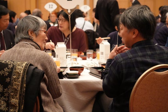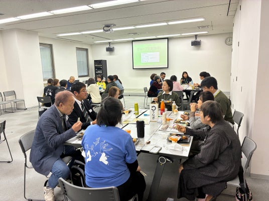 ▲会食でリラックスして交流する参加者