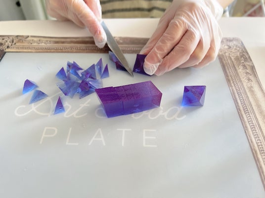 プリズムの光をイメージしたグラデーションの琥珀糖が沢山入っている