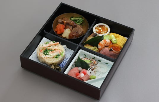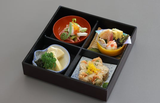 A:松花堂縁高ということで、まずは冬か春のどちらの趣向で献立を考えるか悩みました。