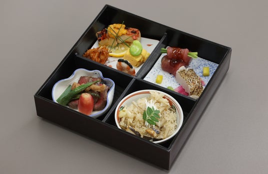 ■競技内容:「松花堂縁高弁当」を課題に、4ツ枡のうち1枡はご飯、3枡は和食の「五法(生、煮る、焼く、蒸す、揚げる)」を取り入れた料理を考案。審査は「試食審査」と「技術審査」の2項目にて実施。