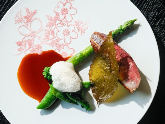 そのほかにも、ハーブやレモングラスの爽やかな香り、桜を思わせるほのかな燻香をまとわせた鴨のロースト、そして薔薇と苺が優雅に響き合う華やかなデザートまで、コース全体を通して、春の情景を五感で巡るような体験をご堪能いただけます。味わいはもちろん、香りの移ろいまでも一皿ごとに感じていただける、まさに“春を纏う”ディナープログラムです。