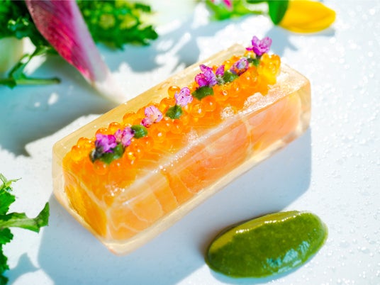「サーモンのアスピック 春野菜と共に」