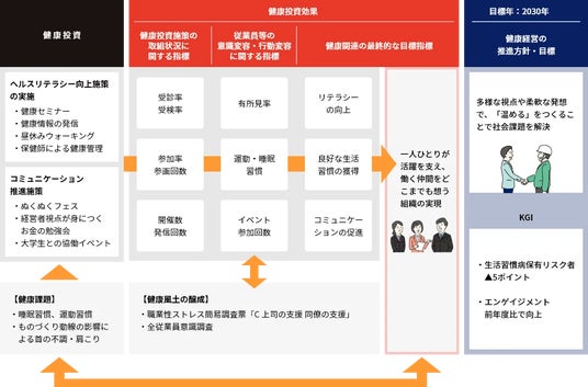 スリーハイでは2023年に「健康経営戦略マップ」を策定し、2030年を目標年とし長期的なKGIを設定しました。