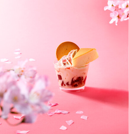 フロマージュドリンクに春フレーバー『フロマージュドリンクさくらベリー』が登場します。レアチーズケーキの風味が楽しめることで人気のフローズン仕立てのフロマージュドリンクに、苺の甘酸っぱい味わいとさくらの華やかな香りがひろがるさくらベリージュレを入れました。さくらベリージュレは混ぜてお召し上がりいただくことでさまざまな大きさになり、食感の変化がお楽しみいただけます。またトッピングには『御用邸ビスコッティ』とさくらパウダーを使用。さくらの花と葉を粉末にしたさくらパウダーはフルーティーさとほのかな塩味、さくらの華やかな香りがひろがり、春のわくわくとした気分を盛り上げてくれます。