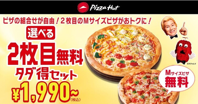 「選べる2枚目無料 タダ得セット」は、1枚目のピザを11種類の味からお好きなものを1つ選べ、さらにMサイズまたはLサイズのどちらかサイズも選べます。2枚目はMサイズのピザ限定で11種類の味から1つ選べるセットです。食べたい気分に合わせて量も味もお好みで組み合わせができて、さらに2枚目のMサイズピザは無料(タダ)でセットでついてくるのでとってもおトク!■キャンペーン内容:1枚目を対象のピザ11種からMサイズまたはLサイズ、2枚目を対象ピザ11種のMサイズから選べるセット■商品価格(税込):通常価格3,980円~8,260円 → 1,990円~5,550円■キャンペーン期間:2023年3月6日(月)~3月26日(日)■開催店舗:一部店舗を除く全国のピザハット■注意事項:※一部店舗では実施しておりません。※生地は「ハンドトス」「パンピザ」「クリスピー」から選べます。※お選びいただくピザのトッピング、サイズおよび受け渡し方法(デリバリー/お持ち帰り)により価格は異なります。※お持ち帰りでご利用の場合、ピザ全品50%OFFと同価格となります。※他のクーポン、割引サービスとの併用はご容赦ください。※数量限定。店舗により販売を終了させていただく場合があります。