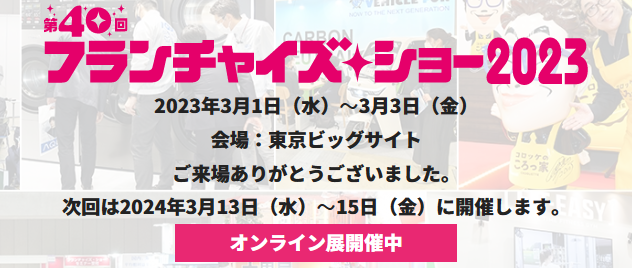 フランチャイズショー出展情報はこちらから:https://messe.nikkei.co.jp/exhibitor/info/FS/ja/17783/