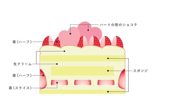 ブーケのようにあしらった真っ赤な苺、しっとりとしたスポンジケーキと、生クリームを贅沢にデコレーションした華やかなショートケーキです。