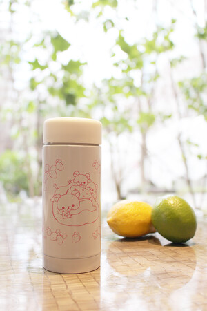 平日・数量限定で、リラックマたちが大きないちごの上でリラックスしているイラストとリラックマの20周年記念ロゴが入ったステンレスボトル付きプランをご用意いたします。