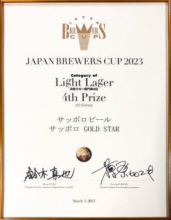 今回、5部門計約300銘柄が審査された中、淡色ラガー部門は60銘柄出品され、その中から“新ジャンル”である「サッポロ GOLD STAR」が堂々の第4位を受賞しました。