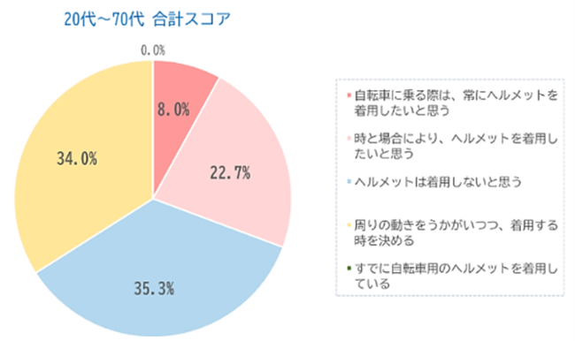 1.常にヘルメットを着用したいと思う人はごく僅か。9割の人が自転車用ヘルメットは普及しないのではと回答