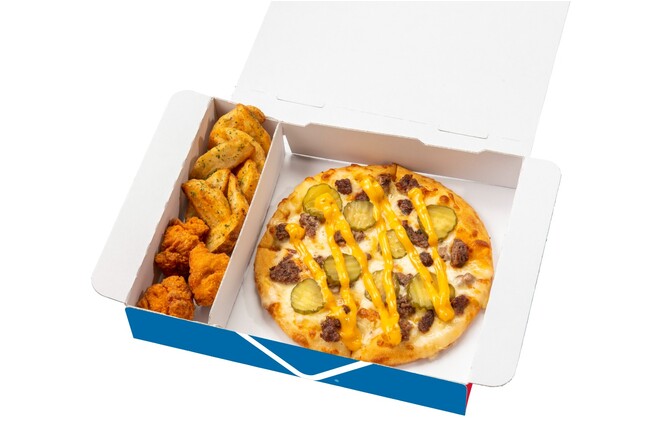 これなら、ワンボックスで、ピザとポテトフライ、からあげ(もしくは、フライドチキンやチキンナゲット)の最強セットが楽しめます。