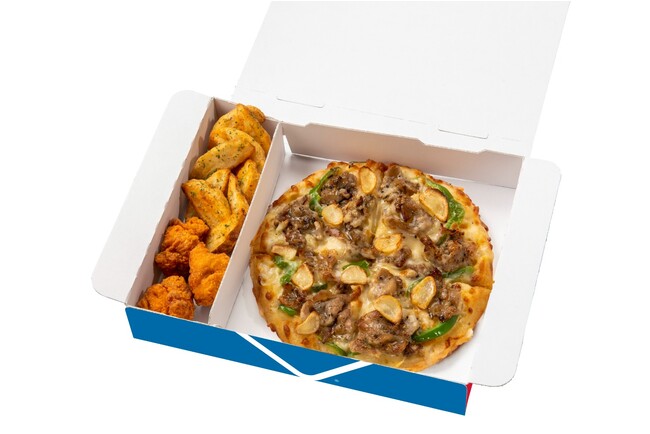 メインはピザ14種類、ピザライスボウル10種類、パスタ他4種類の、全28種類が対象です。ひとり分にちょうどよい直径18cmサイズのピザには、ロングセラーの「ドミノ・デラックス」や王道の「マルゲリータ」を中心に、ドミノの人気ピザをラインナップしています。一見したらピザなのに、食べてみたらバーガーとSNS上でも話題の「ビッグダックバーガー」や、3月6日に発売したばかりの「牛すき焼き」、「炭火焼塩豚カルビ」などもお得な本キャンペーンの対象商品です。また、100%国産米を使ったバターライスの上に、100%モッツァレラチーズとピザのトッピングをのせて、オーブンで香ばしく焼き上げた「ピザライスボウル」もお選びいただけます。サイドメニューは、ポテトフライ、ジューシーからあげ、骨付きフライドチキン、チキンナゲットの他にもデザートも含めた全8種類より選択可能です。