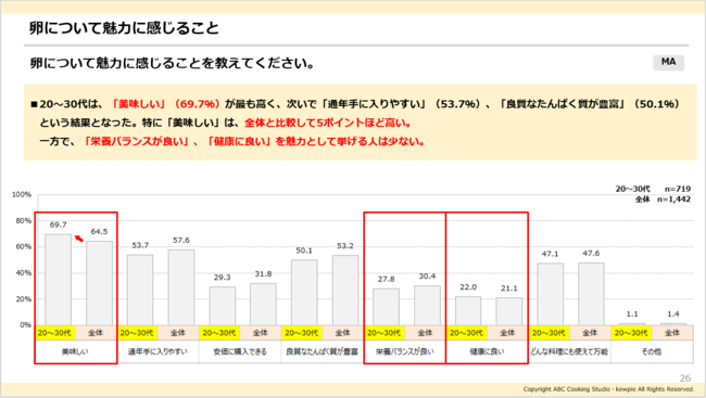 日本及びアジア、東南アジアに料理教室を展開する株式会社ABC Cooking Studio(本社:東京都千代田区丸の内、代表取締役社長 兼 CEO : 志村なるみ、以下ABC)は、キユーピー株式会社(本社:東京都渋谷区渋谷、代表取締役 社長執行役員:高宮 満、以下 キユーピー)と、2022年5月に共同プロジェクト【サラダとタマゴの食と健康キッチン】を立ち上げました。本年は健康についての意識や、サラダや卵料理をつくるときの悩みや課題をリサーチしまとめた「サラダとタマゴの食と健康白書2023」を公表いたします。