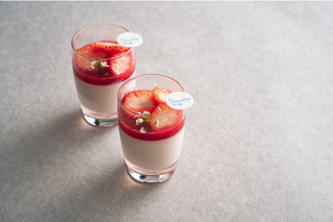 桜のジュレとトンカ豆の香りを移したなめらかな桜のブランマンジェにいちごソース、三重県伊賀産の