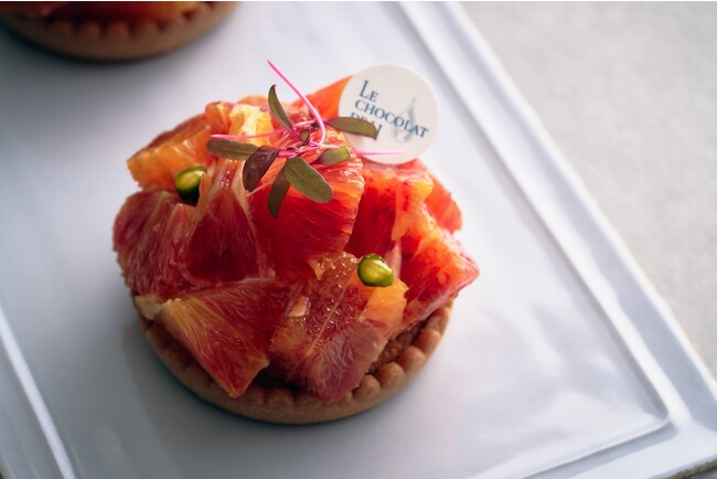 よつぼし苺とブランドオレンジの自家製コンフィチュールに、アーモンドリキュールとブランドオレンジが香るディプロマットクリームを重ね、最後にブランドオレンジを贅沢に使い仕上げました。