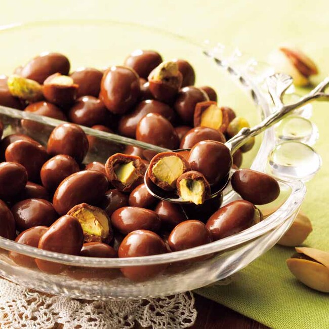 カリフォルニア産のピスタチオを、ミルクチョコレートで一粒ずつコーティングしました。 ピスタチオ特有の食感と旨みが、すっきりとした味わいのチョコレートにベストマッチ。ついつい手が伸びてしまうおいしさです。
