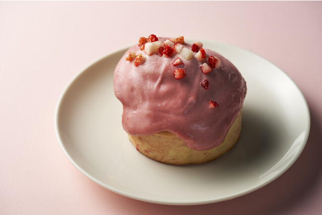 連日完売の大人気商品「シナモンロール」が、春らしいピンク色に。チョコチップを練り込んだもっちりとした生地に、いちごの果汁を含んだ豆乳クリームを贅沢にトッピングしました。いちごの甘酸っぱさとプラントベースとは思えない、コクのあるクリームが生み出す絶妙なハーモニーをお楽しみください。