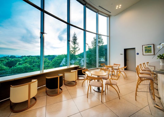 【ラウンジ「ヒルサイドテラス」】大きな窓からは美しい四季の絶景を眺められます