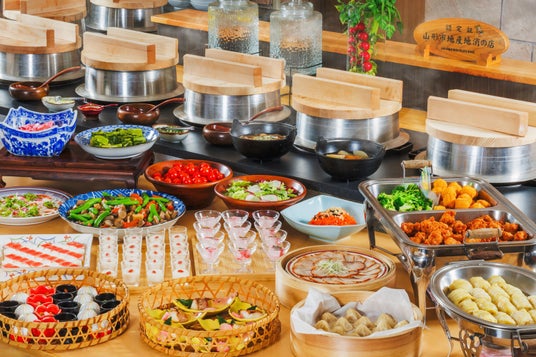 上質な肉質のブランド牛「蔵王和牛」を、贅沢なしゃぶしゃぶで味わいます。前菜では山形の春の旬食材をたっぷりと使用し、さらに「山形名物の芋煮」「山形食材の創作料理」「季節の郷土鍋」「山形産のブランド米」など、かまど風に提供する約20種のビュッフェも楽しめます。