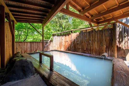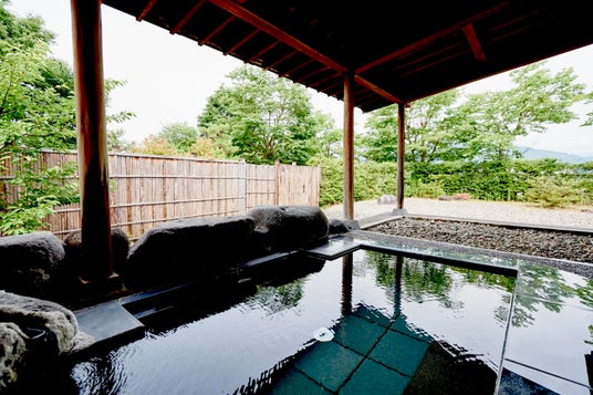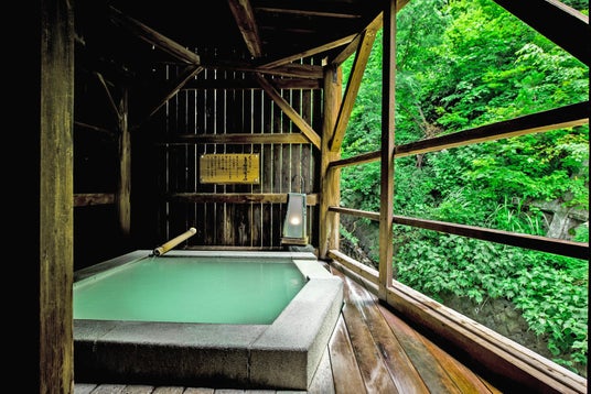 蔵王の新緑を眺めながら至福の時間「丸太造りの温泉」
