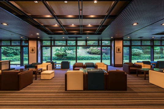 【山庭ラウンジ】久遠の象徴的なラウンジ。四季の移ろいを眺める寛ぎの時間を