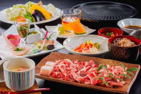 ・蔵王名物ジンギスカン膳:ジンギスカン発祥の地と呼ばれる蔵王で味わう、ジューシーな生ラムの鉄鍋焼き