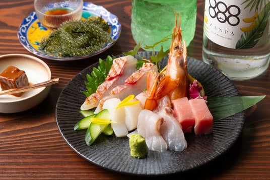 石垣島直送の石垣牛や朝市で目利きした鮮魚など、産地直送にこだわった沖縄食材を使った創作料理や、豊富な地酒を、島にいるように堪能していただけます。店内は沖縄の雰囲気を味わうことができる温かみのある落ち着いた空間で、カウンター席や半個室などシーンによってお選びいただけます。