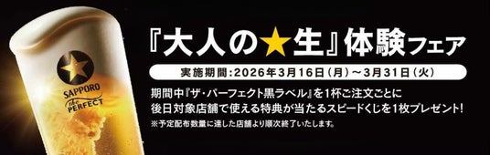 ※「ザ・パーフェクト黒ラベル」の取り扱いがない対象店舗では、「サッポロ生ビール黒ラベル」(小グラス)が対象商品となります。
