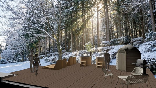 高原の雪に耐えられるよう、北極圏のエスキモーの住まいであるイグルーをモチーフにした、ドーム型サウナを採用します。