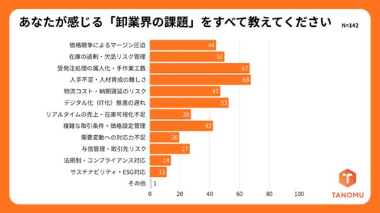 卸業者の販促・受発注システム『TANOMU』(タノム)を提供する株式会社タノム(本社:東京都渋谷区、代表取締役:川野 秀哉、以下 当社)は株式会社インフォマート(本社:東京都港区、代表取締役社長:木村 慎)と共同で、卸業者142社を対象に卸業界のDX実態調査を実施いたしました。