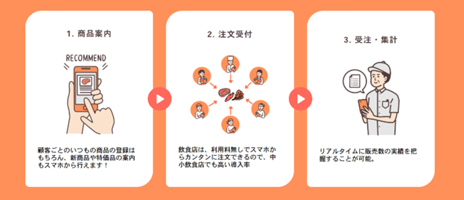 『TANOMU』は飲食店や理美容などの店舗と食品卸売業者間の受発注をPCやスマートフォンで管理可能な、販促・受発注管理システムです。