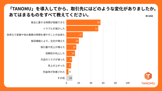 「発注時間が短縮できた」55.6%、「トラブルが減少した」52.1%と、取引全体の円滑化や信頼性向上につながっていることが確認されました。