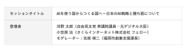 デジタル大臣としてAI・デジタル政策に携わってきた河野太郎氏と、小笠原治氏との対談を通じ、日本のAIの現状と今後の方向性について議論します。