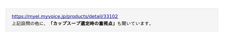 本調査のカップスープは、使い捨てカップ入りでお湯を注ぐタイプが対象です。味噌汁やお吸い物は除きます。調査結果をお知らせいたします。